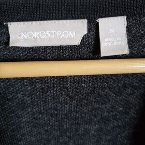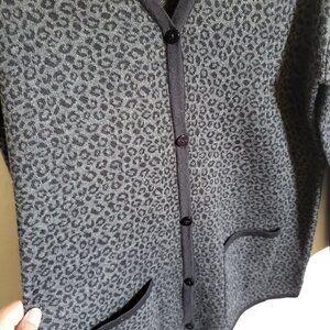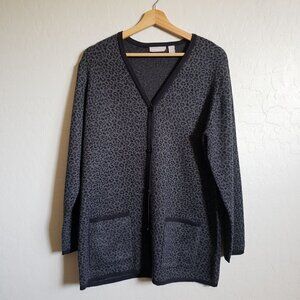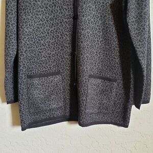 Nordstrom Wool Blend Animal Print Long Cardigan Sweater V-Neck Button Front Leopard Cheetah Black Grey Size Women's Medium
