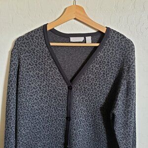 Nordstrom Animal Print Wool Blend Cardigan Sweater V-Neck Black Grey Size Medium