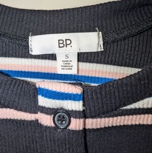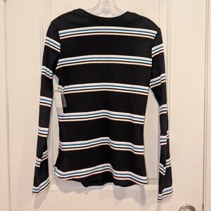 Nordstrom BP Black Henley with White and Blue Stripes Size Small