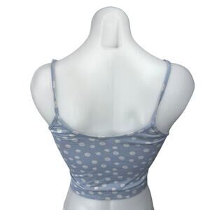 Nordstrom BP Blue White Daisy Knit Stretch Scoop Neck Cami Crop Tank Top Size M