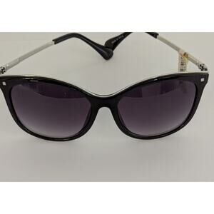 Metal frames, with polycarbonate earpiece, smokey tinted lense, metal embedded on top rim for a fashionable look