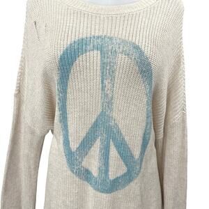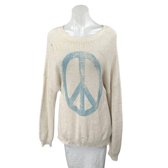 Nordstrom BP Destroy Peace Sign White Beige Knit Long Sleeve Sweater Top Size 1X