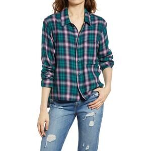 Nordstrom BP. Flannel Button Up Shirt Size XS/Extra Small Green & Pink Plaid NWT