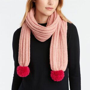 Nordstrom BP Scarf Chunky Knit Pink Pompom Trim New