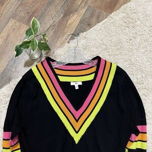 Nordstrom BP. Size Medium Gender Inclusive Be Proud Neon Striped V Neck Sweater