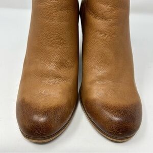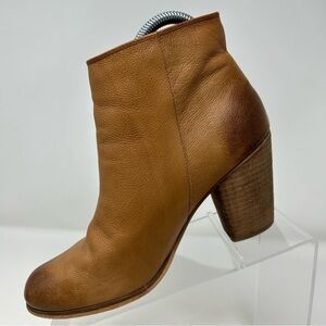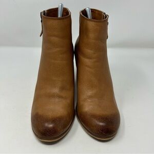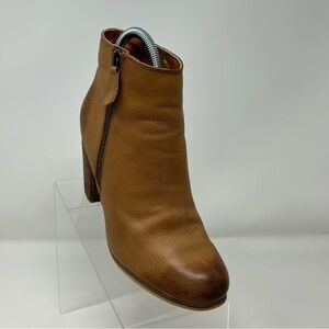 Nordstrom BP Tan Light Brown Leather Stacked Heel Ankle Boots Size 8 Zipper Comfort Fall