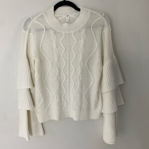 Nordstrom BP. White Cable Knit Tiered Ruffle Bell Sleeve Sweater Small