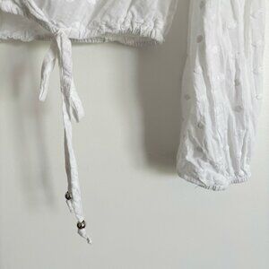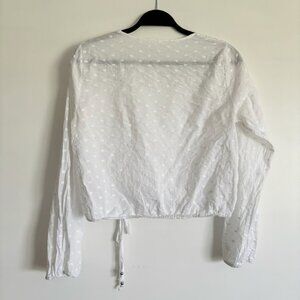 Nordstrom BP White Eyelet Wrap Long Sleeve Cropped Sheer Layering Top Size Mediu