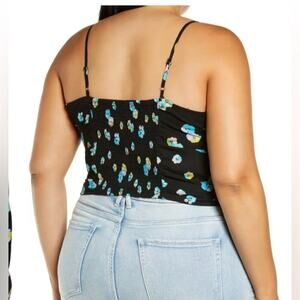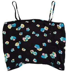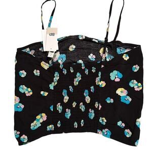 Nordstrom BP Women’s Floral Ruched Spaghetti Strap Cropped Cami Sz S Black Multi