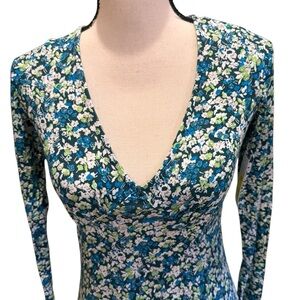 Nordstrom BP Women’s Green Floral Long Sleeve Fit & Flare Dress Size S