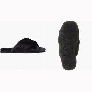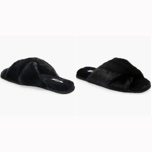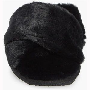 🆕 Nordstrom BP. Women's Mae Cross Strap Faux Fur Black Slippers