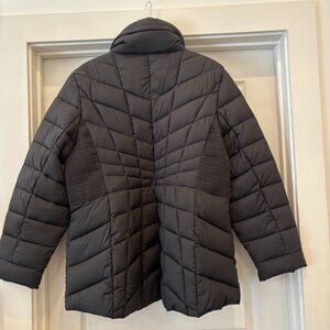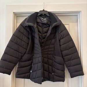 This versatile black puffer easily layers over casual or dressy outfits, making it a go-to staple for fall, winter, and early spring.