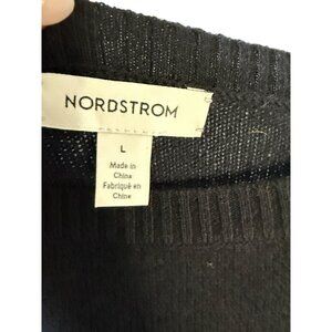 This Nordstrom black cashmere sweater in size L is a luxurious addition to your wardrobe. Its ribbed cuffs and neckline offer a cozy and elegant look, ideal for cooler weather.
