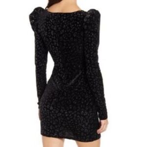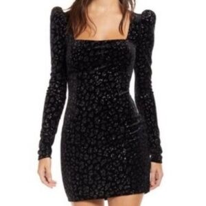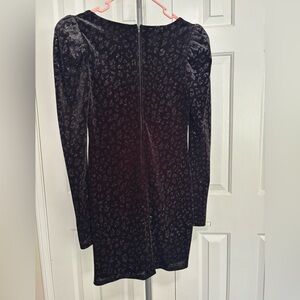 Chic black velvet dress with glitter detail. Long sleeves and elegant fit designed to look elegant and formal. Its square neckline and subtly raised shoulder pads will enhance your figure. Perfect for special occasion or evening wear.
