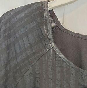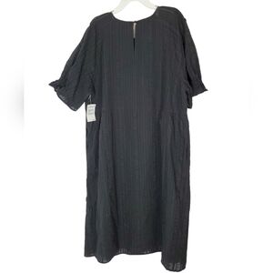 NWT black Nordstrom Size Large linen midi dress gathered just under the bustline. Slim Vertical stripes give the dress an accentuated detail. Puff sleeves with elastic armband to offer ruffle at hem of sleeve. Side pockets.