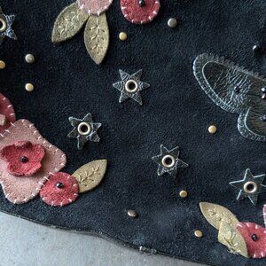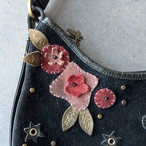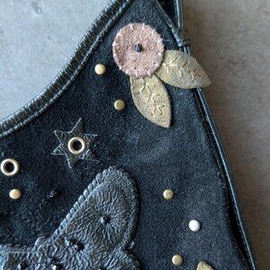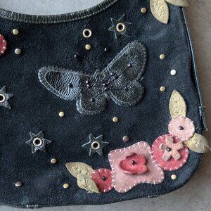 Nordstrom Black Suede Leather Butterfly Floral Applique Shoulder Bag Hand Bag
