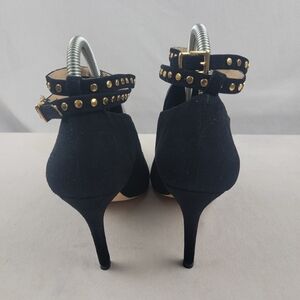 Black Suede Studio genuine suede good studded ankle strap heels Size 9.5
