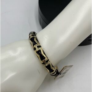 Nordstrom Black and Gold Tone with Crystals Hinged Bangle Bracelet New