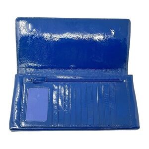 Nordstrom Blue Patent Leather Pleated Rectangular Clutch Wallet Bag