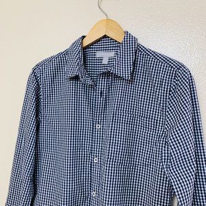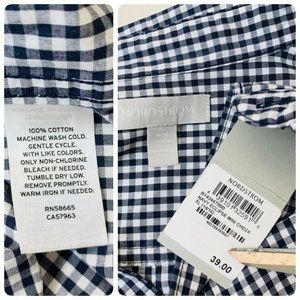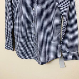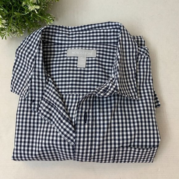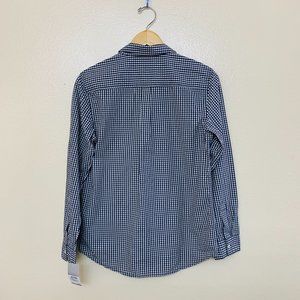 Nordstrom Boys Poplin Button Shirt Collared XL Navy Eclipse Mini Check
