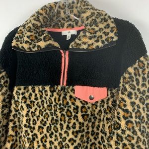 Nordstrom Bp. Tan Dale Leopard Big Spot Leopard Fleece Pullover Large