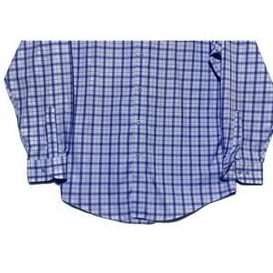 Nordstrom Button Up Shirt Men's Medium Blue White Plaid Long Sleeve Wrinkle Free