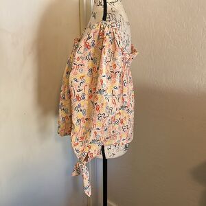 Nordstrom By Cristina Martinez Poet Print Textured Top, size medium. Pullover style, ties at the cuffs, off the shoulder neckline, view all photos for best representation.