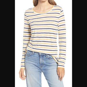 Nordstrom CASLON Long Sleeve Crewneck T-shirt In Ivory Yellow Navy Stripe $29.00