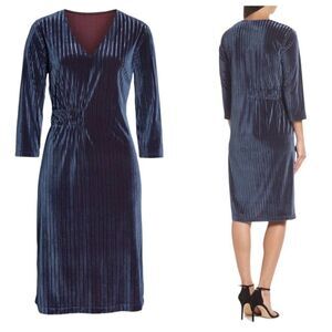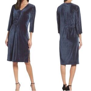 Nordstrom CHELSEA28 Stripe Velvet Burnout Dress in navy dusk womens size 1X NEW