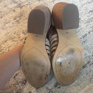 Nordstrom Calson Nubuck leather caged Chelsea cutout beige tan ankle bootie size 6. In very good pre owned condition with some wear on the sole.