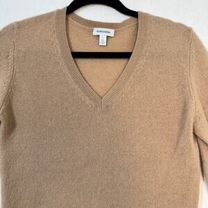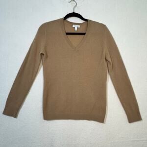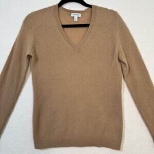 Nordstrom Camel Brown Cashmere V-Neck Long-Sleeve Sweater Size Small Relaxed Fit