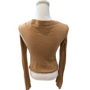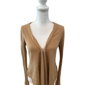 Nordstrom Cashmere Asymmetrical Hem Cardigan Sweater, size S. Gorgeous luxe and lightweight cardigan sweater in a lovely neutral camel color. 100% cashmere, good preowned condition with no flaws to note. Single clasp closure and long slightly bell sleeves, cropped back with longer front.