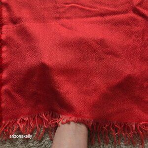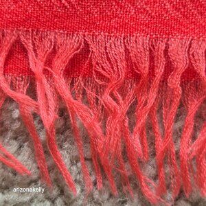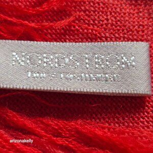 Nordstrom Cashmere Scarf Red Orange Lightweight Fringe Border