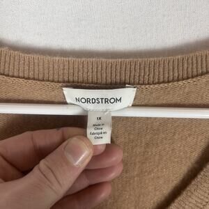 Nordstrom Cashmere Sweater Womens Plus 1X Brown Tan Pullover V-Neck Cozy FLAWED