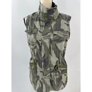 Nordstrom Caslon Green Camo Utility Vest Military Pockets Small