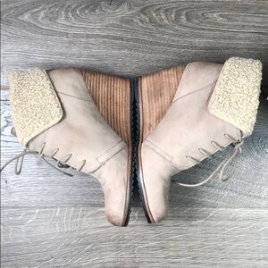 Nordstrom Caslon Leather Suede Wedge Bootie Fleece Trim Ivory Cream 8 Fleece Collared. Nordstrom. Leather upper.