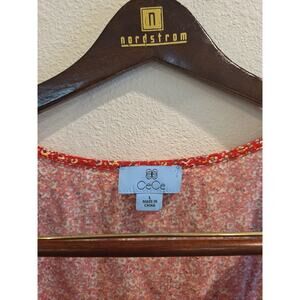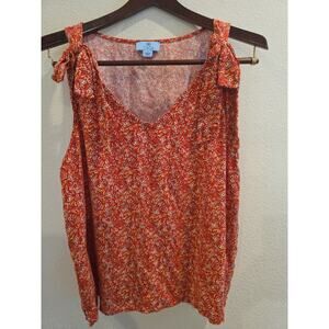 Nordstrom CeCe Floral TieShoulder Sleeveless Top Womens LG Red Floral 100% Rayon