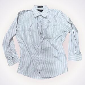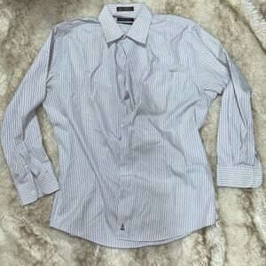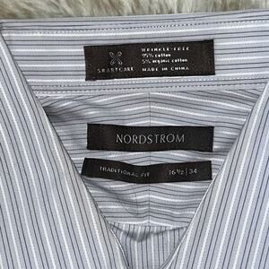 Nordstrom Traditional Fit Gray and White Stripe Button Front Shirt | Size 16 ½