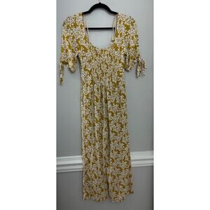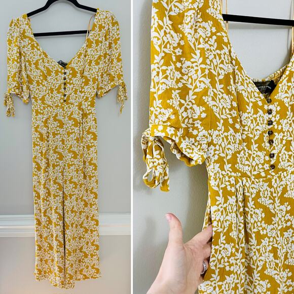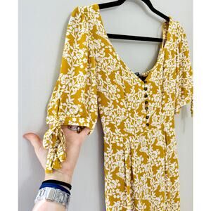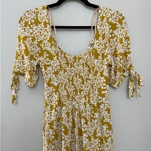 Nordstrom Code x Mode Bohemian Resort Feminine Yellow Floral Smock Jumpsuit S/M