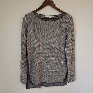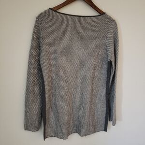 Nordstrom Collection Cashmere Sweatshirt Gray White Scoop Crewneck Size Small