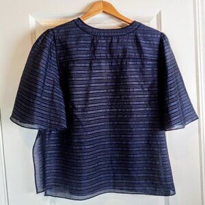 Nordstrom Collection Navy Blue Sheer Striped Fan Sleeve Top