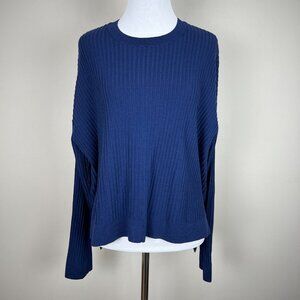 Nordstrom Collection Sweater Top Womens Large Blue Merino Wool Dolman High Low L