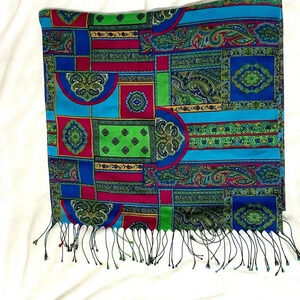 Nordstrom Colorful Scarf Made in Italy. Measures 60” long with a 4” tassel, 20” Wide. 100% polyester, made in Italy. Beautiful heel tone colors with a paisley pattern. Gently used condition, I have not detected and rips or stains.