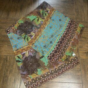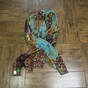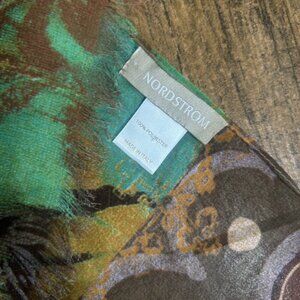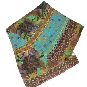 Nordstrom Colorful Teal Abstract Floral Print Chiffon Rectangular Scarf