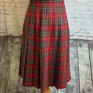 Nordstrom Corbin Ltd Vintage Grey Red Pleated Plaid Skirt Sz 12 Academia Holiday Cabin
