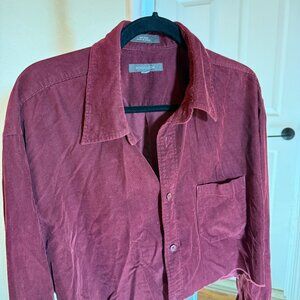 Nordstrom Cropped Corduroy Shirt – Wine/Burgundy | Raw Hem | Upcycled
