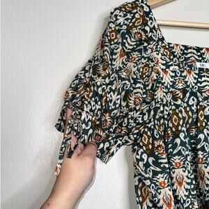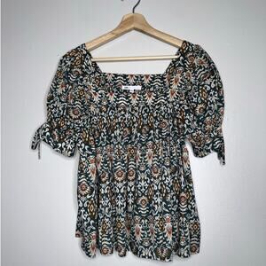 Nordstrom DR2 Boho Puff Sleeve Blouse Small Multicolor Ikat Print Cotton Top