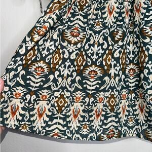 • Color: Dark green base with orange, brown, cream, and ivory ikat pattern