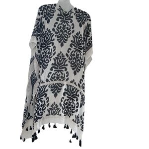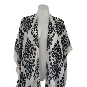 Nordstrom Duster Kimono Tassels Open Front Black & White Boho