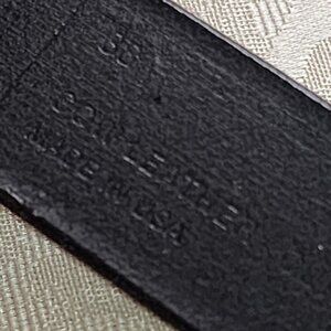 This black leather belt boasts a sleek and smooth finish, perfect for adding a touch of sophistication to any outfit. Its high-quality leather construction ensures durability and style, making it an ideal accessory for both casual and formal occasions. In very good condition.